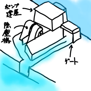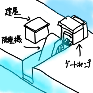 ポンプ建屋と除塵機ルート+ゲートルート