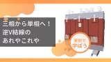 ここで、三相から単相を取り出す方法として用いられることのある「逆V結線」トランスと比較してみましょう。実務においてどちらを選定すべきか迷うことがありますが、判断基準はいたってシンプルです。